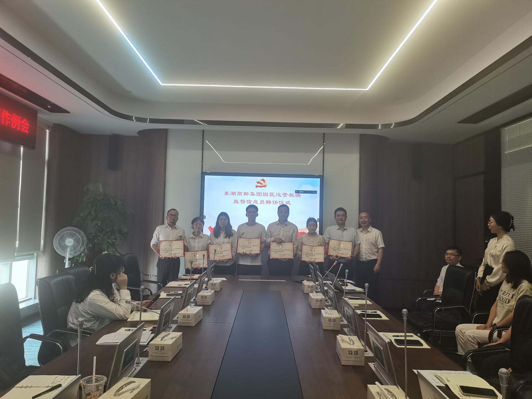 在監(jiān)督信息員聘任儀式上,會議傳達了《武漢東湖高新集團股份有限公司監(jiān)督信息員管理暫行辦法》《園區(qū)運營板塊監(jiān)督信息員工作實施辦法(試行)》,宣讀了東湖高新紀委《關于聘任江振華、龔玄等2名同志為武漢東湖高新集團股份有限公司監(jiān)督信息員的決定》《關于聘任龐義、馬鋒等12名同志為武漢東湖集團股份有限公司監(jiān)督信息員的決定》。姜玉林同志為7位新任監(jiān)督信息員代表頒發(fā)聘書,監(jiān)督信息員代表江振華、許玲玉作表態(tài)發(fā)言。